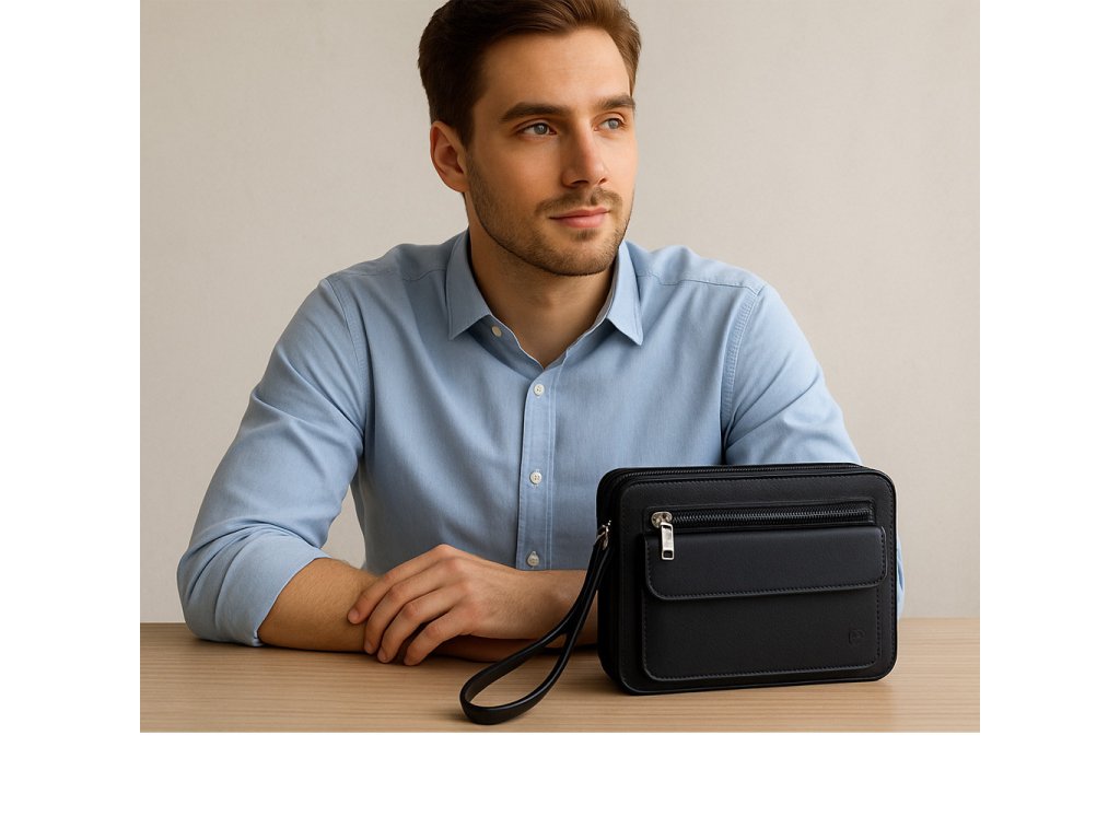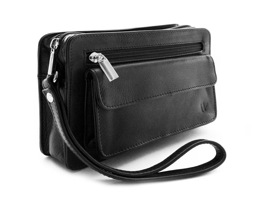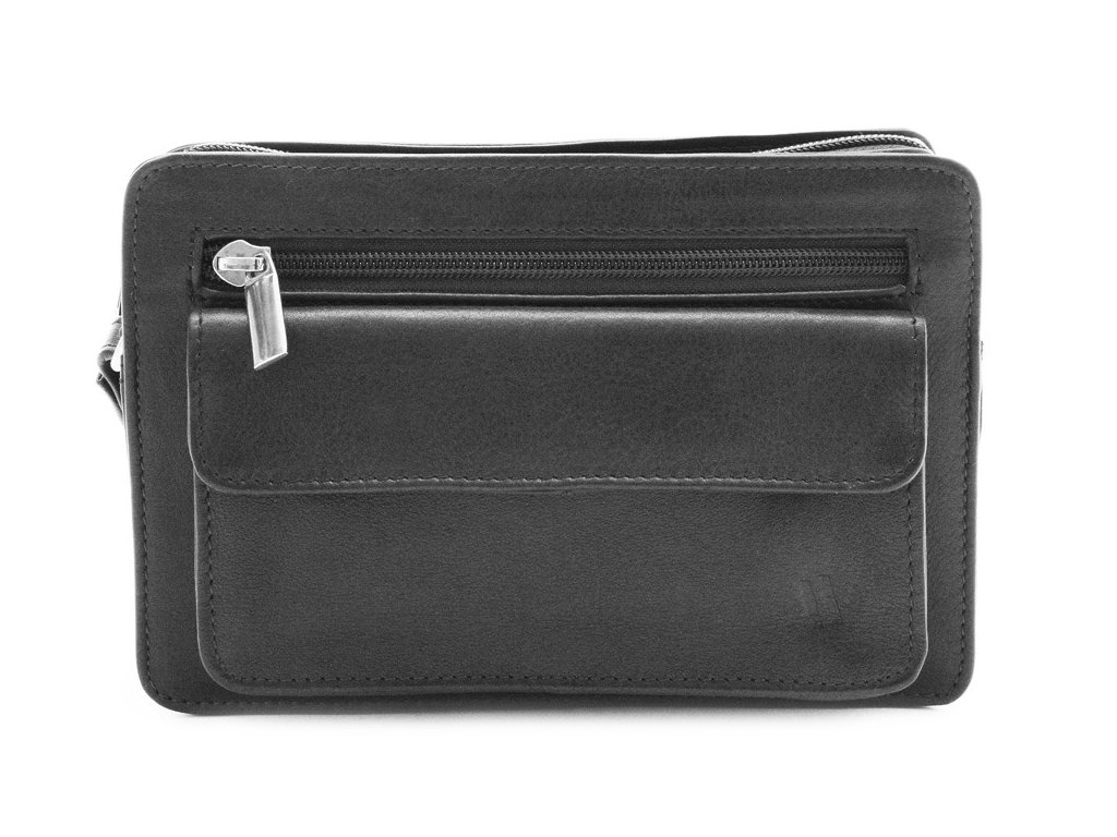 Pánská kožená etue má hlavní prostor chráněný zipem. Na přední vnější straně se nachází