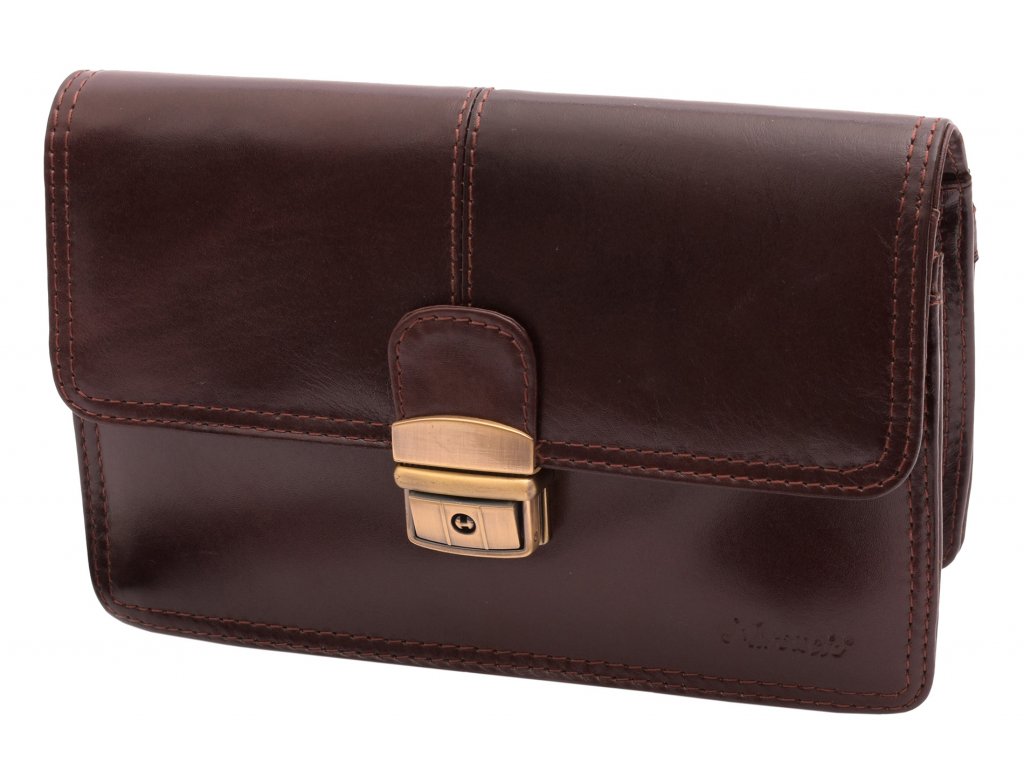 Pánská příruční taška udělaná v kvalitní hovězí lícové kůži. Taška je určena k nošení osobních věcí (peněženka, doklady, brýle, mobil, pera, malý zápisník apod.) Taška se nosí v ruce nebo za boční odnímatelnou rukojetí na karabině. Taška je v pevném provedení, zachovává svůj elegantní tvar. Uvnitř 2 komory, oddělené plochou přihrádkou se zipem, 3 závěsy na karty + závěsy na pera. Na zadní straně je složka se zapínáním na zip. Výhodou našich unikátních designu pánských tašek je možnost zamknutí na klíč.