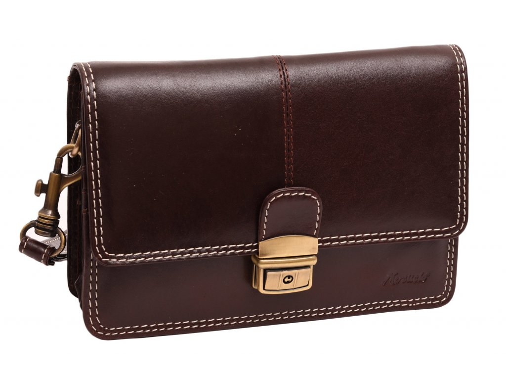 Pánská příruční taška udělaná v kvalitní hovězí lícové kůži. Taška je určena k nošení osobních věcí (peněženka, doklady, brýle, mobil, pera, malý zápisník apod.) Taška se nosí v ruce nebo za boční odnímatelnou rukojeť na karabině. Taška je v pevném provedení, zachovává svůj elegantní tvar. Uvnitř 2 komory, oddělené plochou přihrádkou se zipem, 3 přepážky na karty + závěs na propisku. Na zadní straně je složka se zapínáním na zip. Výhodou našich unikátních designu pánských tašek je možnost zamknutí na klíč.
