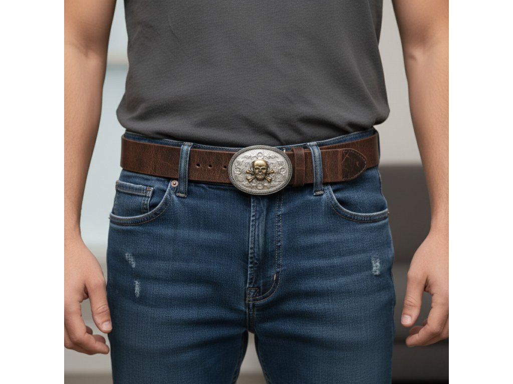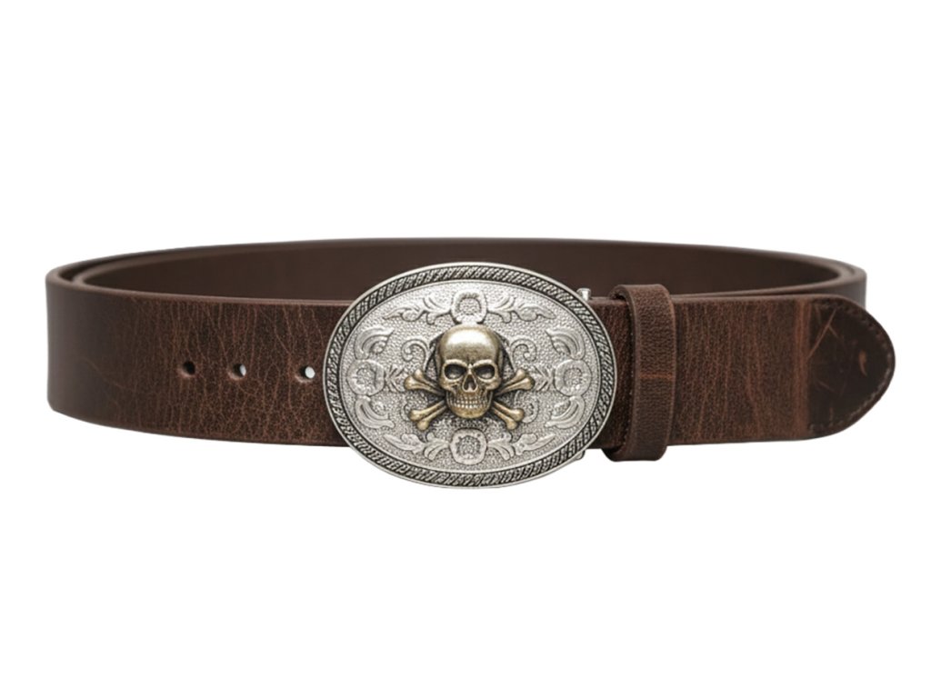 Kožený pánský opasek Malaga – s 3D sponou s motivem lebky