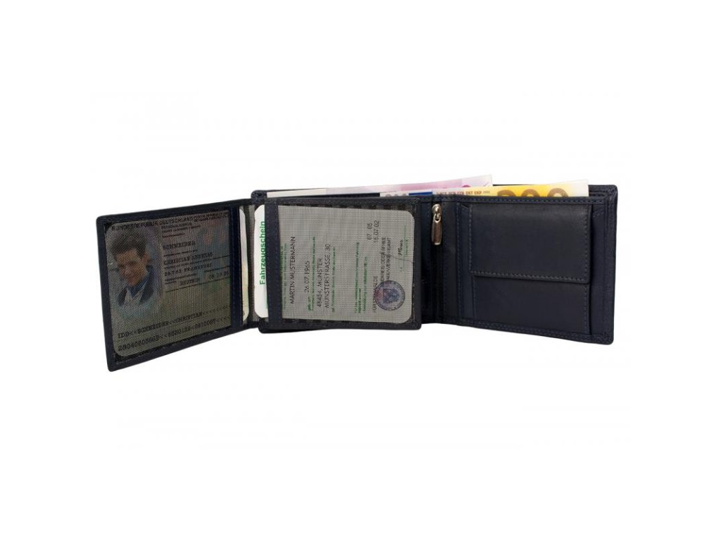- 2 průhledná okénka s černou síťkou (občanský průkaz, řidičský průkaz)
