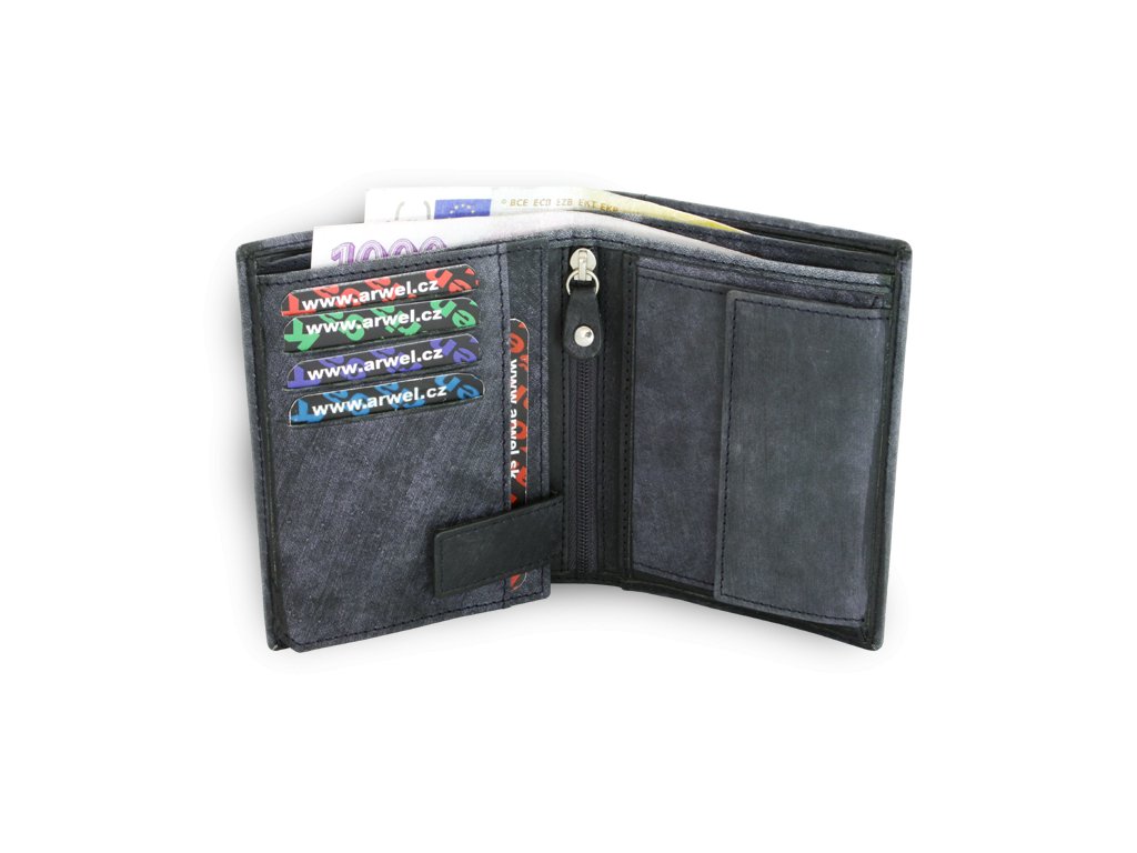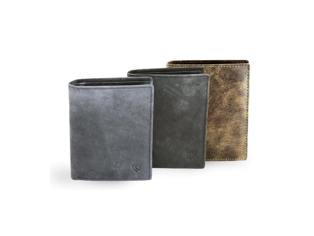Pánská kožená peněženka orientovaná na výšku s úpravou styl JEANS.
