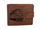 Praktická kožená peněženka pro pány s motivem lokomotivy.