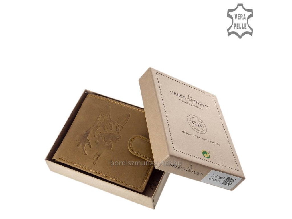 Peněženka Green Deed z příjemné pravé kůže s ochranou RFID. Kvalitní výrobek v dárkovém balení pro milovníky psů, motiv německý ovčák..