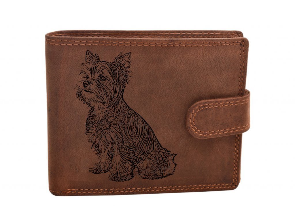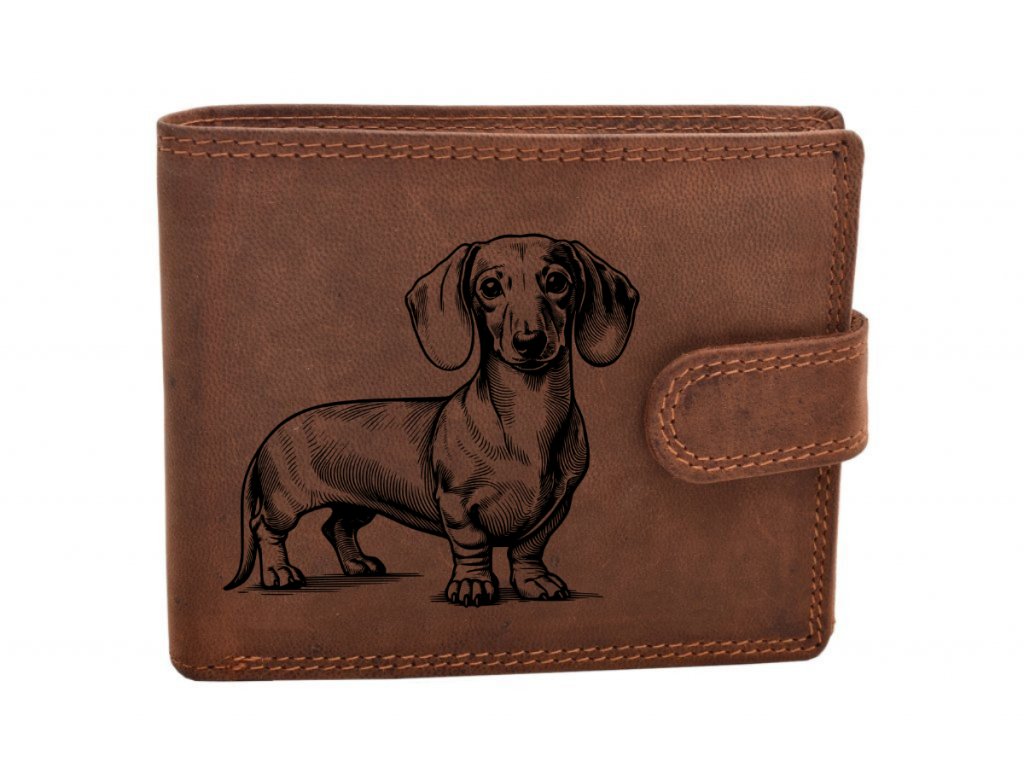 Pánská kožená peněženka s motivem pejska v přírodní broušené kůži je ideálním doplňkem pro každého milovníka zvířat. Jedná se o klasický model v přehledném uspořádání s více sloty pro platební a věrnostní karty. Tato peněženka nabízí dostatek místa pro mince, bankovky i doklady a díky kvalitnímu zpracování je velmi odolná. Tento model je přímo stvořen pro gravírování, což z něj činí unikátní osobní předmět nebo skvělý dárek.