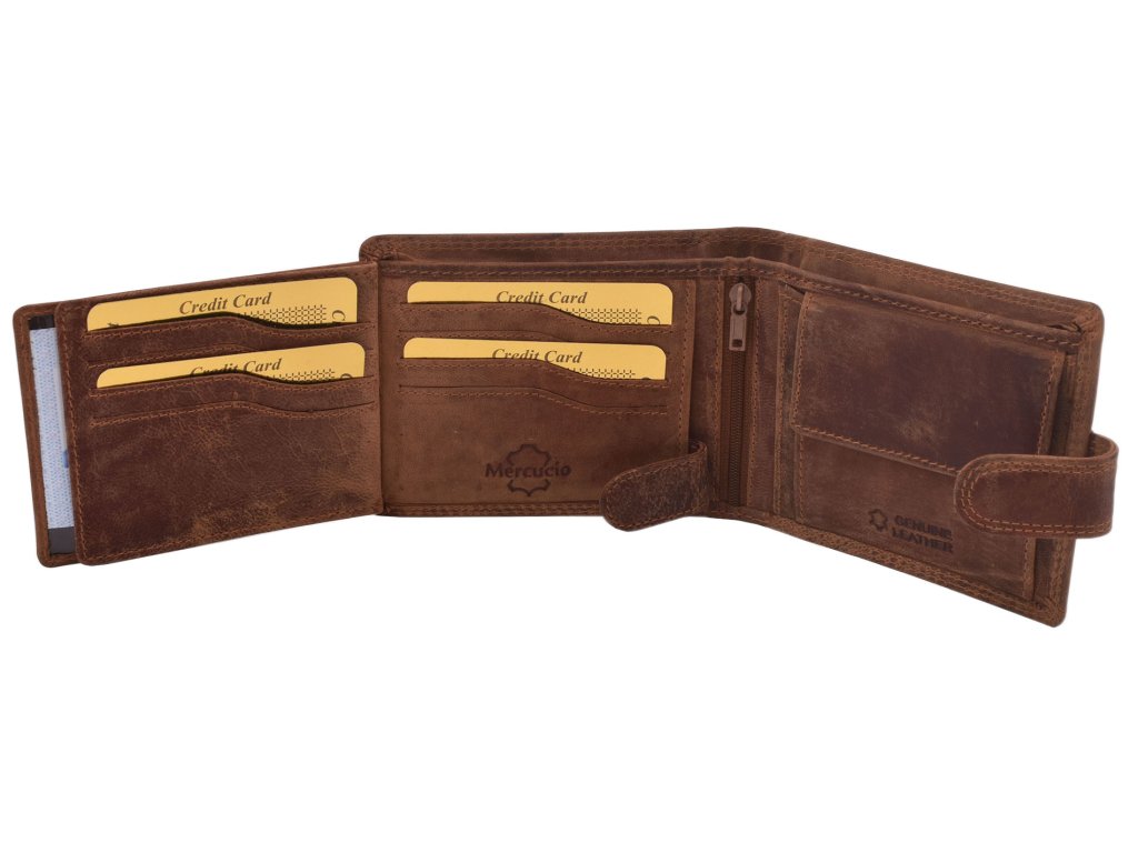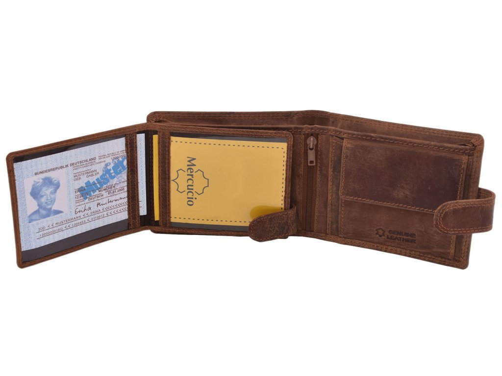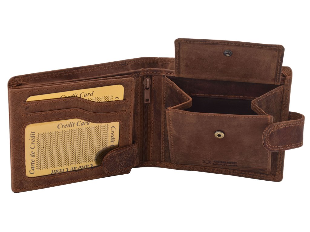 Oblíbená pánská peněženka se zapínáním na šířku je jeden z klasických modelů s praktickým vnitřním členěním. Zejména díky tomuto vnitřnímu členění je peněženka top modelem mezi peněženkami se zapínáním. Vnitřek nabízí až 9 přihrádek na karty, jakož i průhledné přihrádky vhodné pro uložení fotek nebo dokladů s fotkami. Nedílnou součástí je i kapsa na mince, která se nachází uvnitř, hned vedle zipové přihrádky.