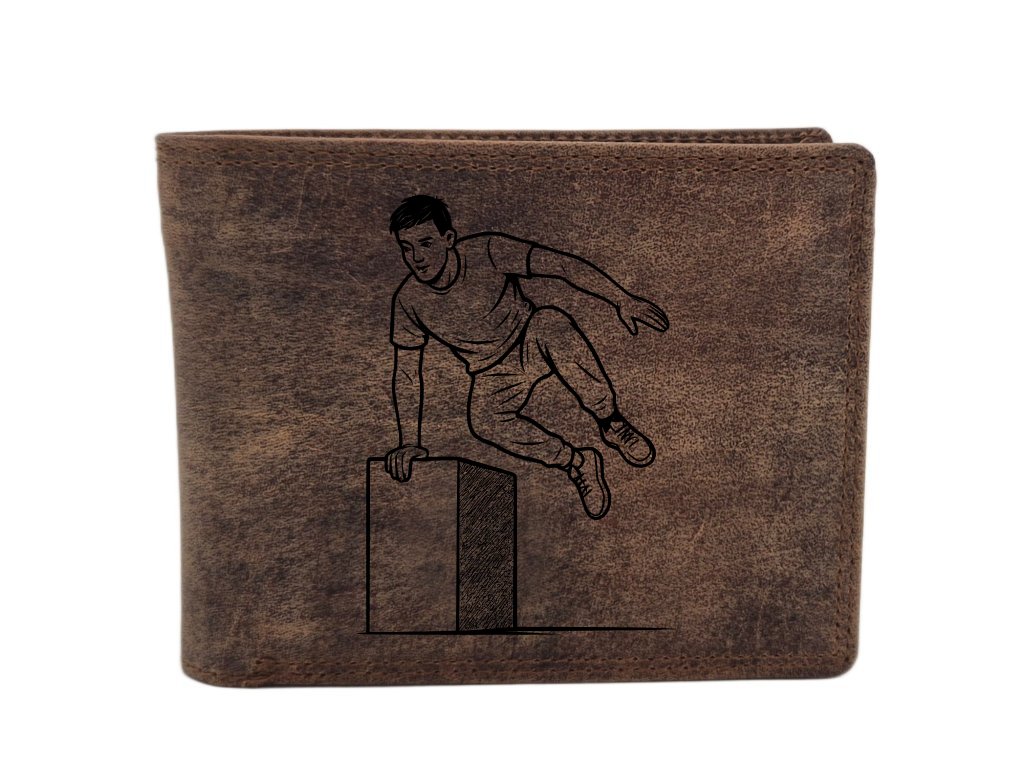 Hledáte doplněk, který vyjádří vaši vášeň? Peněženka z broušené kůže HUNTER kombinuje poctivé řemeslo s moderní bezpečností. Elegantní dvojité prošívání doplňuje integrovaná RFID ochrana a praktická tajná kapsa na zip. Tato peněženka má tmavější strukturovaný povrch a kresba je méně kontrastní. Pokud chcete více viditelný motiv, použijte variace sportů na peněžence Samir.