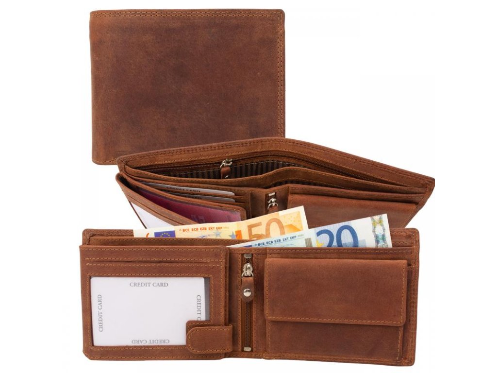 - ✔ Bankovky a mince: 2 přihrádky na bankovky, extra široká kapsa na mince