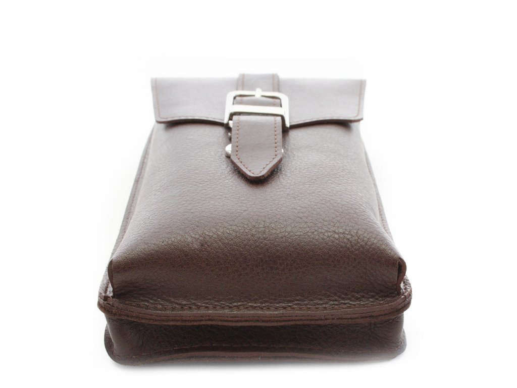 Pánské kožené pouzdro na mobil obsahuje 2 velké komory překryté klopou se zámečkem. Na zadní vnější straně se nachází poutko pro možnost umístění pouzdra na opasek.