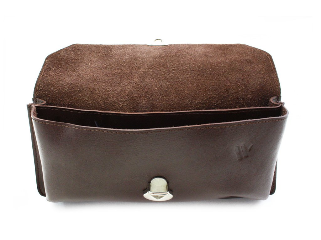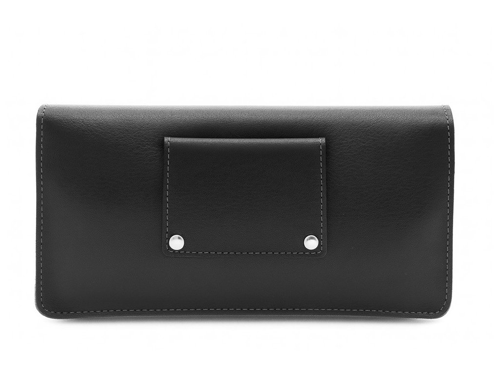 Pánské kožené pouzdro na mobil na šířku obsahuje 2 velké komory chráněné klopou se zámečkem. Na zadní vnější straně se nachází poutko pro možnost umístění pouzdra na opasek.